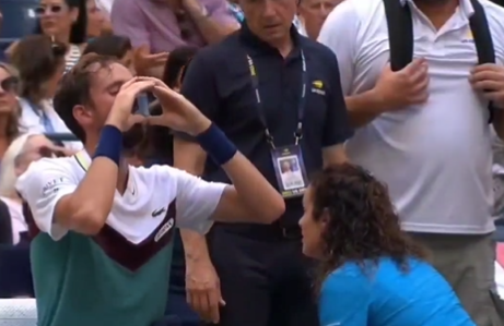 En esta imagen se puede ver a Medvedev usando un Ventolín para poder abrir vías respiratorios y no llevarse un susto en pleno partido: