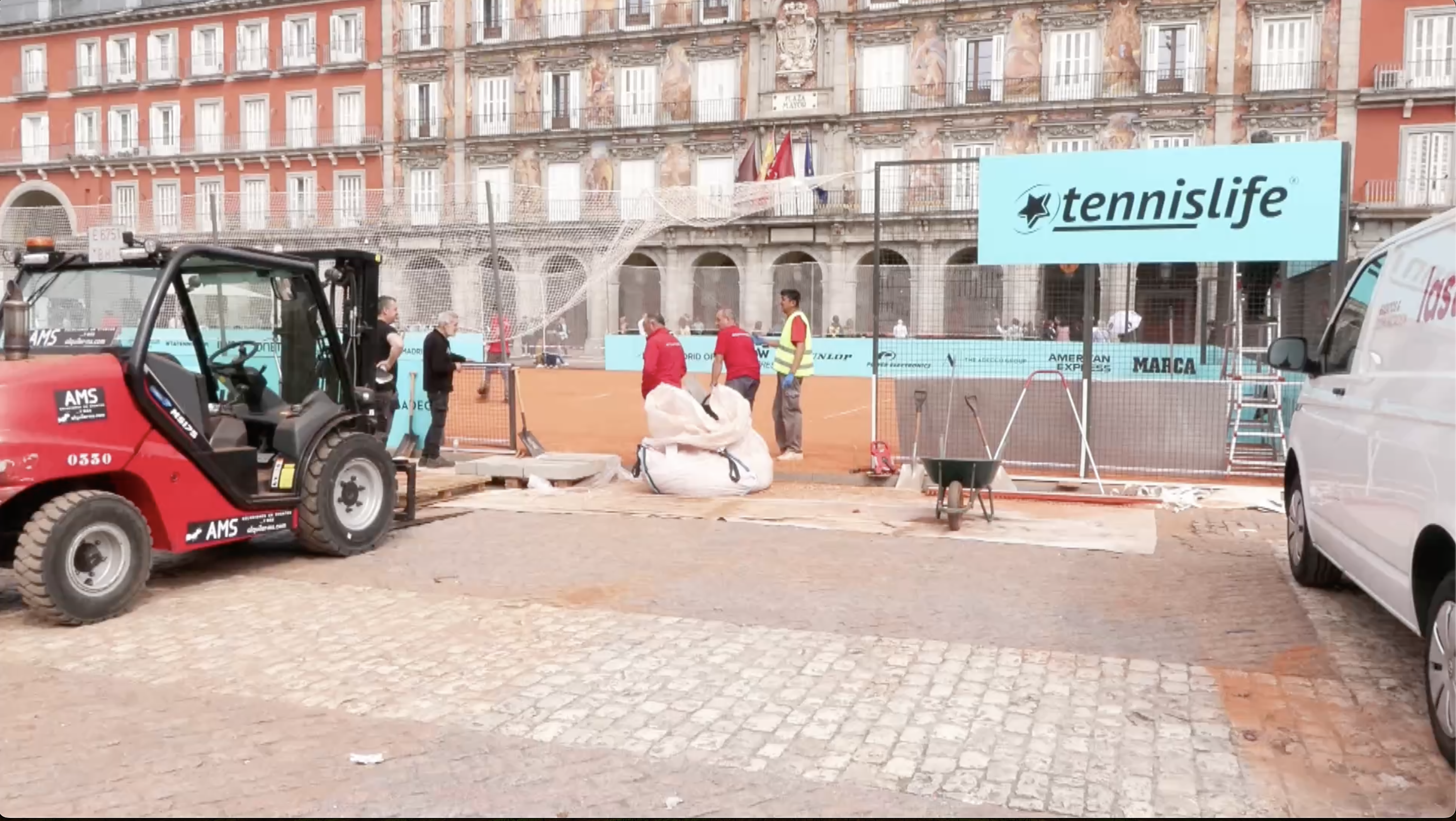 El montaje comenzó el lunes 1 de abril, a primera hora de la mañana, para que la pista esté lista en las fechas señaladas de cara a promocionar la competición Mutua Madrid Open, que tendrá lugar entre el 22 de abril y el 5 de mayo.
