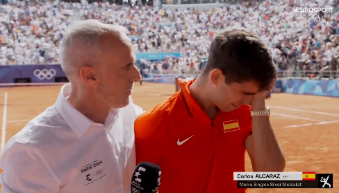 Una vez acabado el partido, Carlos Alcaraz era entrevistado en Eurosport y ahí rompía a llorar emocionado: