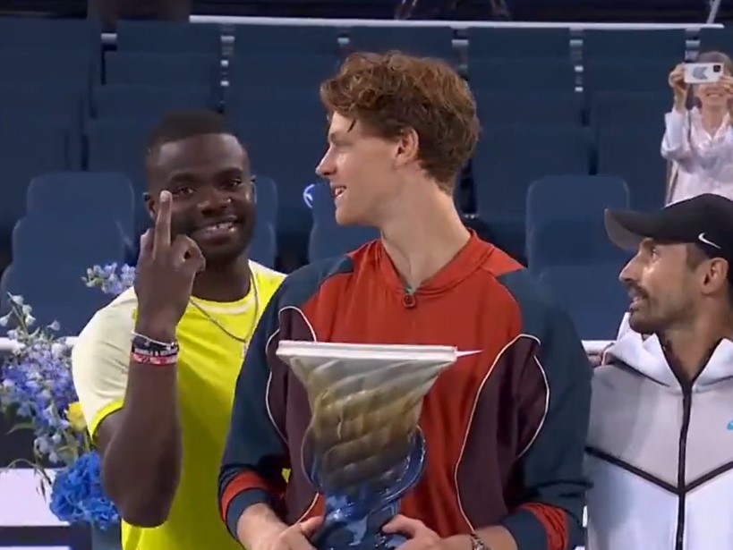 Fueron apenas un par de segundos, pero cuando Sinner se preparaba para posar con el trofeo que le acredita como campeón del Masters de Cincinnati, apareció el estadounidense por detrás, posando ante las cámaras mientras realizaba una peineta. El italiano se lo tomó con buen humor y la cosa siguió como si nada.