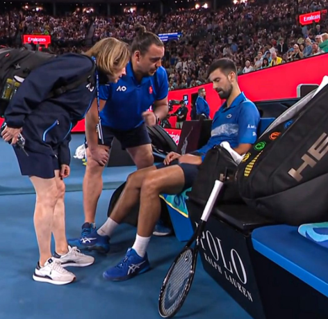 🤒 Djokovic pide asistencia médica con algún problema en la pierna izquerda. Se marcha a vestuarios a que le traten.