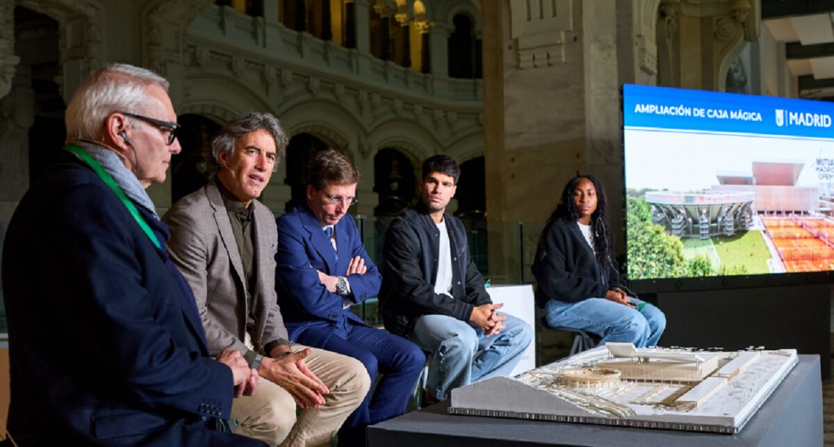 "Este martes se ha presentado el proyecto de la instalación semipermanente de la Caja Mágica, diseñada por el arquitecto Dominique Perrault. Carlos Alcaraz y Coco Gauff han sido testigos de este importante anuncio para el #MMOPEN junto al alcalde de Madrid, Almeida", comenta el tuit del Mutua Madrid Open.