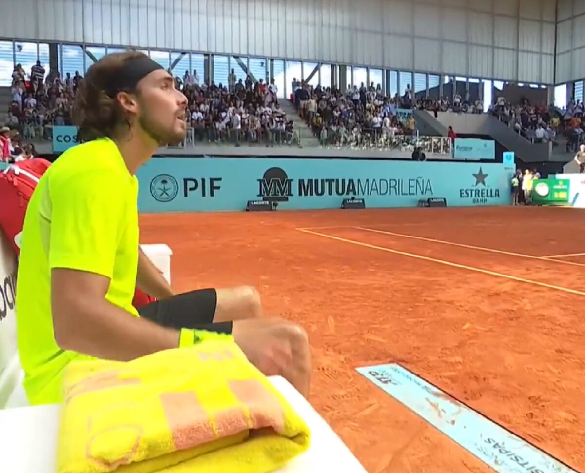 Ver para creer. Stefanos Tsitsipas ganó su partido ante Struff en el Estadio 3 del Mutua Madrid Open y cuando logró el último punto se sentó como si nada. El griego ni siquiera se dio cuenta de que había ganado el partido.