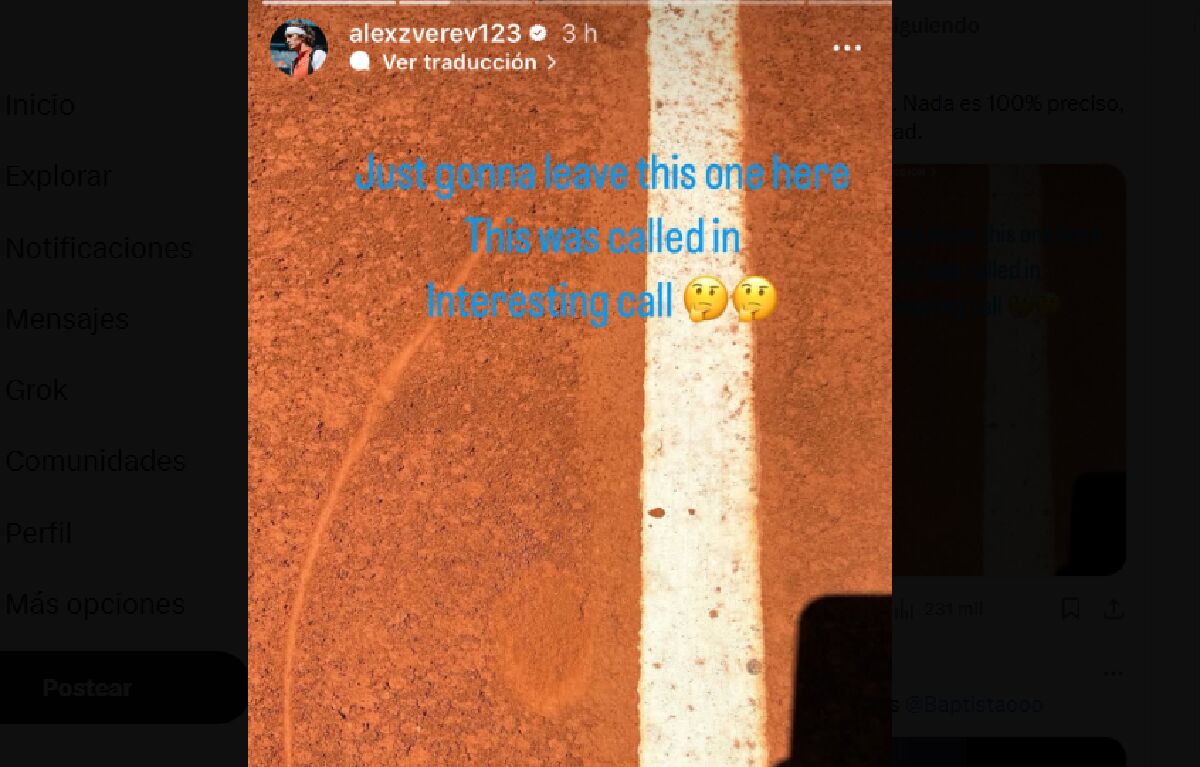 Después de eso, Zverev recibió un warning aunque eso no le hizo dudar y se acabó llevando la segunda manga en el tie break. Eso sí, después del partido y por redes sociales, Zverev publicó su foto:
