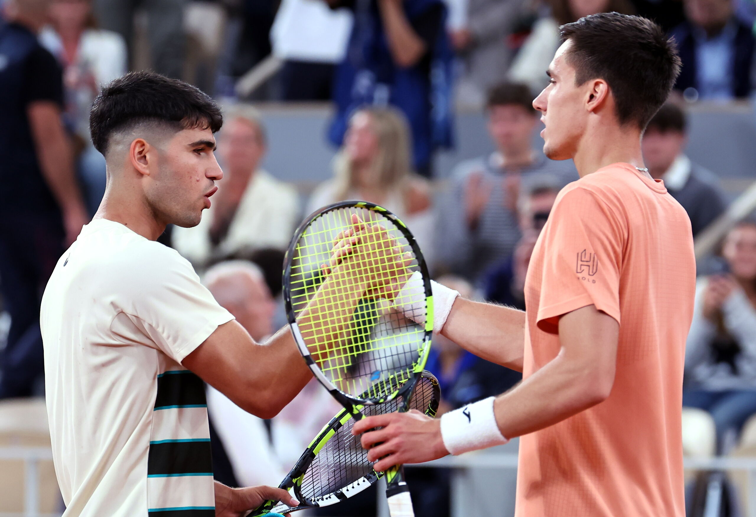 Verdugo de Alcaraz en el torneo de Roma de 2023, donde inició una serie de triunfos sobre jugadores del top-10 que le hicieron ganarse cierta fama de 'matagigantes', Marozsan trató de mantenerse en contacto, pero el ritmo era ya demasiado elevad.