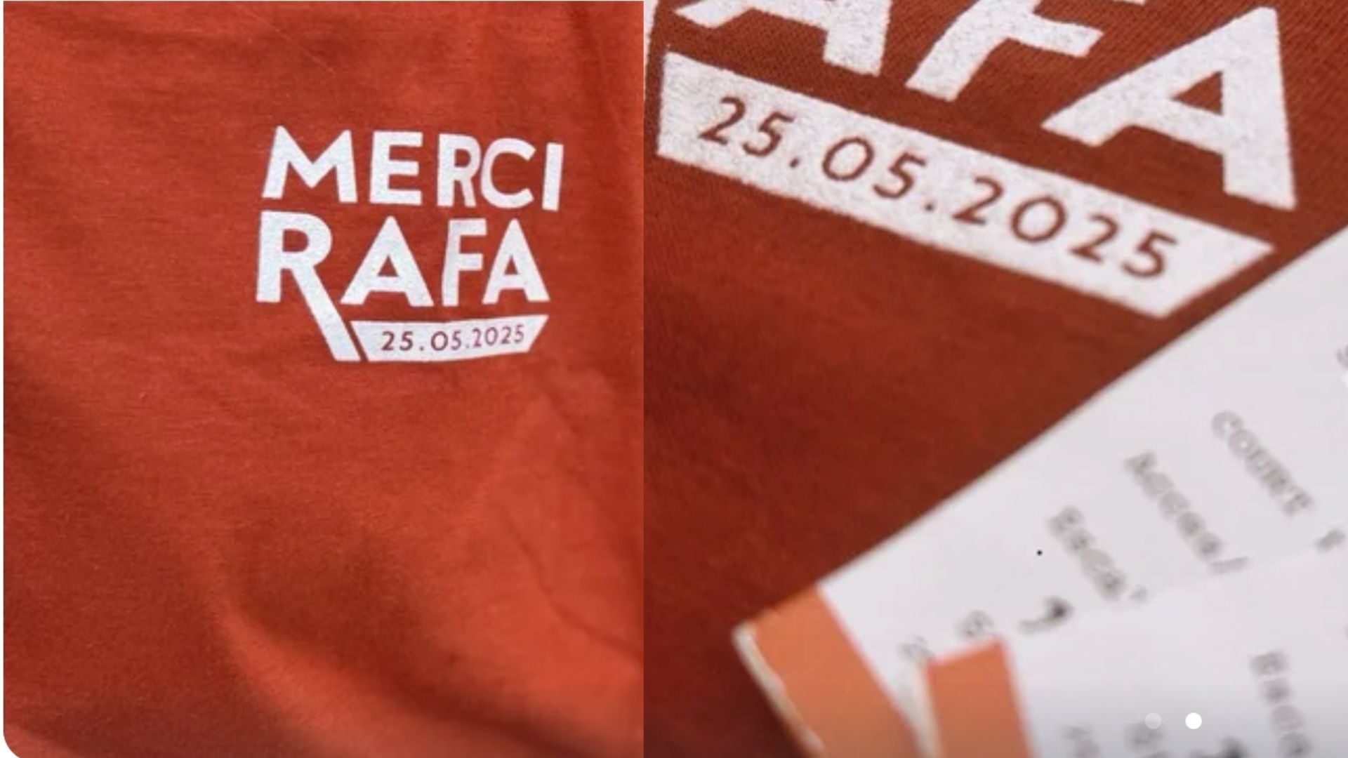 10.000 camisetas únicas. Las gradas del Philippe Chatrier se llenaron para rendir homenaje a la leyenda del tenis español Rafael Nadal. El color naranja ladrillo tiñó el espacio gracias a las camisetas repartidas por la organización del torneo y que incluían la inscripción Merci, Rafa en la parte superior izquierda de la prenda con la fecha en la que se realizó el homenaje al extenista balear: 25-05-2025.
