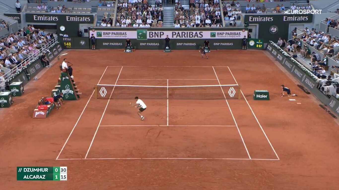 No puede parar de dejar jugadas para el recuerdo y lo hace en todos su partidos. Carlos Alcaraz, número 2 del mundo y vigente campeón en Roland Garros, ganó con sufrimiento al bosnio Damir Dzumhur con más apuros de los que se esperaban.