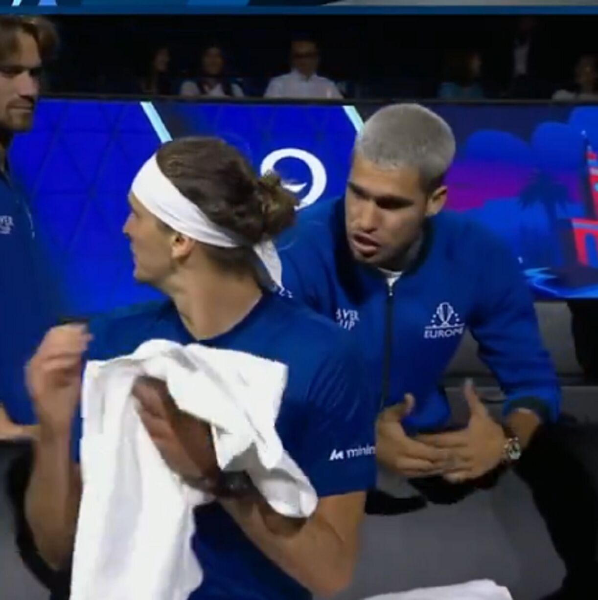 Un mal gesto o una mala interpretación de lo que ocurrió, pero la imagen se está haciendo viral y deja en bastante mal lugar a Alexander Zverev. Fue en la Laver Cup, el torneo tenístico que enfrenta por equipos a Europa contra el Resto del Mundo. En un momento dado Carlos Alcaraz quiso ayudar a Zverev durante el partido del alemán y este no le hizo ni caso.