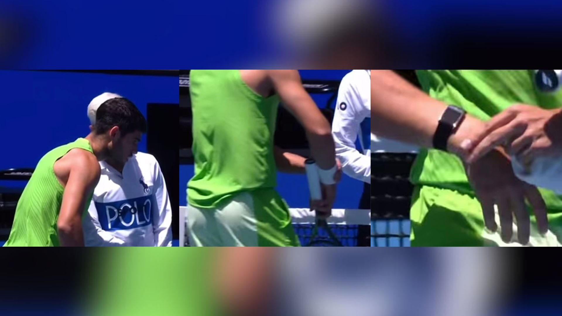 Después del partido, Alcaraz restó importancia: "Son reglas del torneo, de la ATP, de la ITF. No se puede jugar con ella. Son cosas que te ayudan a cuidarte más, a controlar mejor el descanso, los entrenamientos, la carga... pero bueno, no he podido jugar con ella, no pasa nada. Se quita y a funcionar", aseguró el murciano.