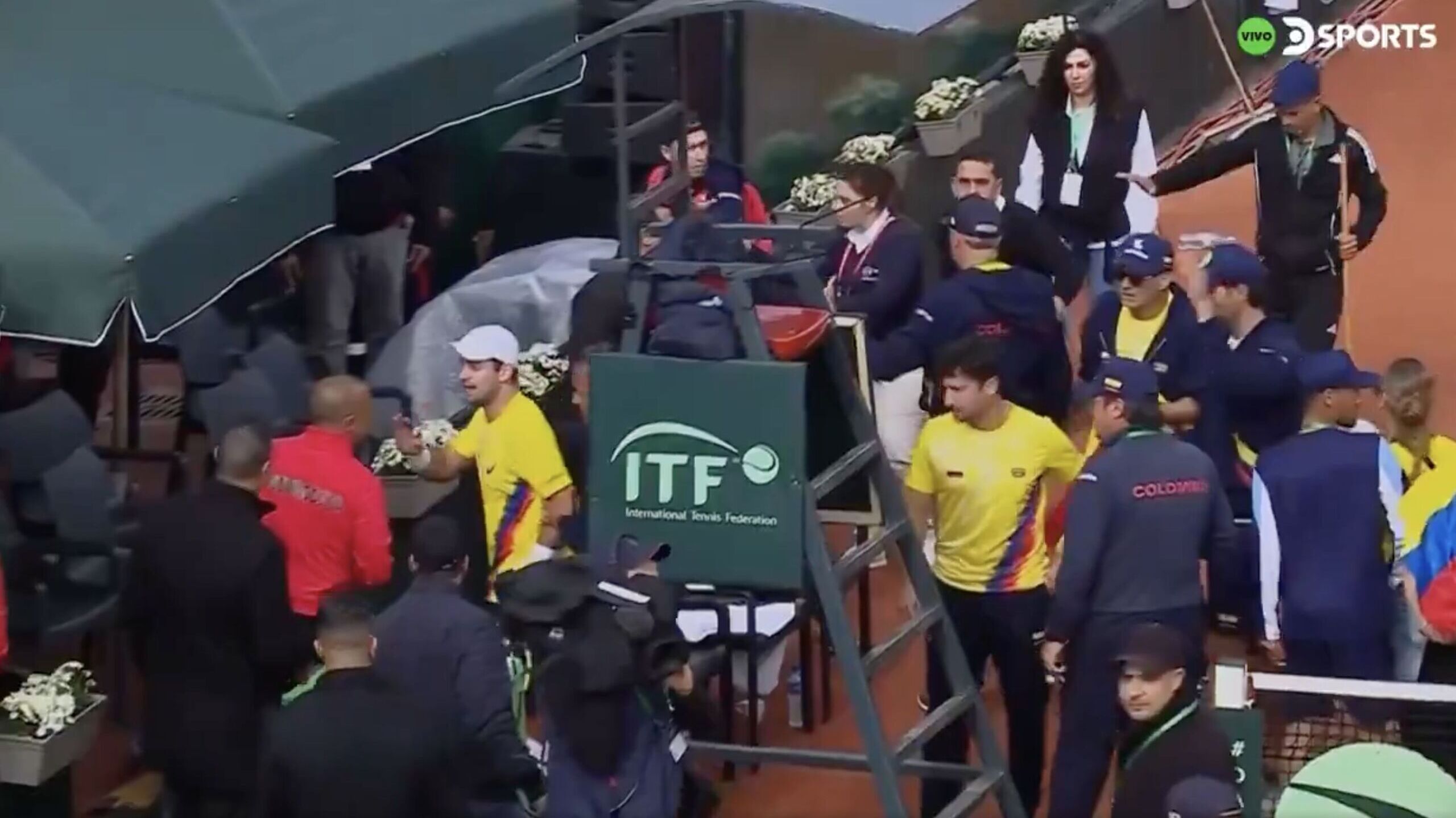 Los jugadores cafeteros, que inicialmente intentaban abrazarse, tuvieron que cubrirse la cabeza y buscar refugio ante la mirada atónita de los oficiales de la Federación Internacional de Tenis. La tensión creció hasta el punto que la delegación colombiana tuvo que salir escoltada hasta el hotel de concentración para evitar que fuera a más la situación.
