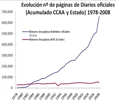 Imagínese una carretera de 210 kilómetros de papel. Ésta es la longitud (virtual) que alcanza cada año la regulación administrativa a nivel regional, unos 700.000 folios de Diarios Oficiales Autonómicos.