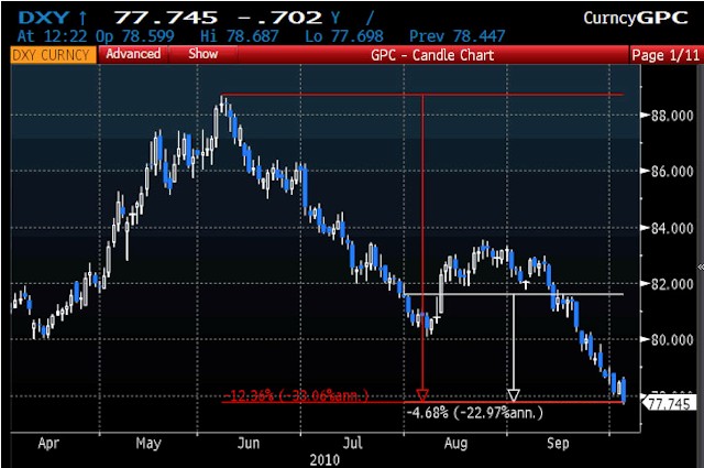 Pero lo que hasta hace poco parecía realizarse de forma coordinada bajo la tutela de la FED, ahora se está desarrollando al grito de "sálvese quien pueda". No obstante, en la reunión del G20 de abril de 2009 en Londres, las principales potencias del planeta se comprometieron a "abstenerse de todo tipo de devaluación competitiva", mientras que en la pasada reunión de Toronto, celebrada en junio, insistieron en la necesidad de que los tipos de cambio estén orientados hacia el "mercado", es decir, que "reflejen los fundamentos económicos subyacentes" para "contribuir a la estabilidad de la economía mundial". Compromisos que son ya papel mojado.