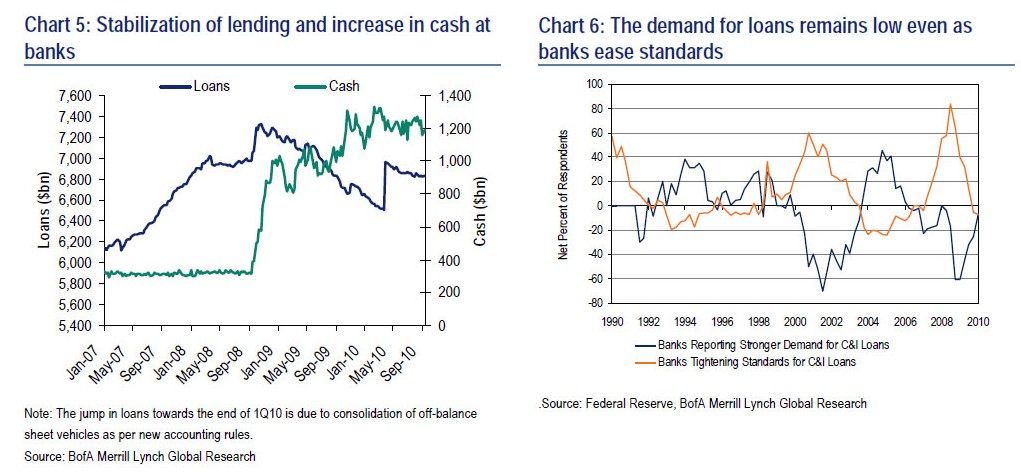 ¿Problema? Nada de esto ha funcionado hasta el momento. Una nueva ronda por parte de la FED tan sólo agravará la situación económica en EEUU. De hecho, la concesión y demanda de crédito no repunta pese al aumento de reservas bancarias, los tipos bajos y la mejora de condiciones.