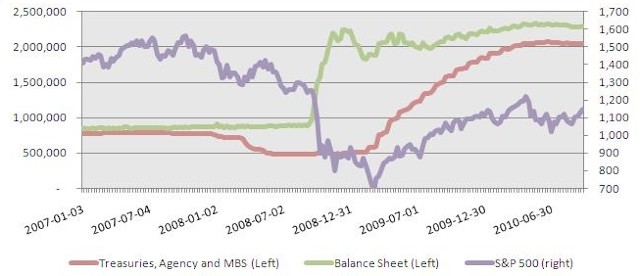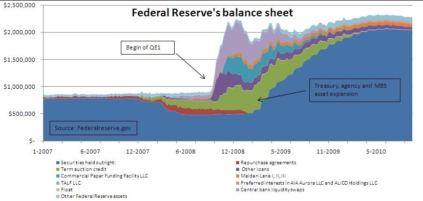 El presidente de la Reserva Federal de EEUU (FED), Ben Bernanke, está dispuesto a proporcionar más alcohol al borracho, y además de forma gratuita, con tal de evitar la resaca. Hasta el momento, la FED ha inyectado en el mercado cerca de 1,7 billones de dólares mediante la compra de deuda pública y bonos hipotecarios (MBS), gracias a su primera ronda de expansión crediticia (quantitive easing 1), iniciada en marzo de 2009.