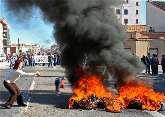 Durante la protesta, que ha durado una hora y 20 minutos, los afectados han quemado algunos neumáticos y sus batas de trabajo y han reclamado a la empresa indemnizaciones "dignas".