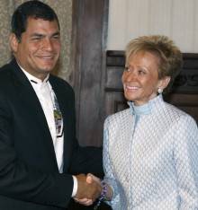 De la Vega, de su parte, explicó que las compañías españolas están en Ecuador "con voluntad de permanencia" y que han venido "a quedarse", a "trabajar", a "ganar dinero" pero también a "contribuir al desarrollo económico y social". Con esa voluntad, se mostró segura de que se redundará en la ampliación de inversiones. Manifestó que las "expectativas" son muy positivas, porque se van a concretar las condiciones específicas a través del diálogo y del acuerdo. Recordó que Telefónica ha generado 28.000 empleos en este país y Repsol, 1.600. En cualquier caso, dijo que las condiciones las tienen que fijar las compañías y el Ejecutivo ecuatoriano.
