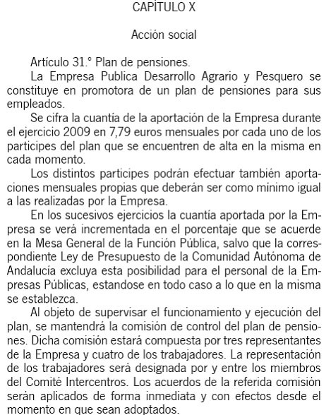 La empresa pública Desarrollo Agrícola y Pesquero, DAPSA, de la Junta de Andalucía y penetrada por el PSOE en todo su aparato directivo como demostramos ayer y seguiremos demostrando en días sucesivos, paga con el dinero de todos los andaluces una parte del fondo de pensiones privado para sus empleados según consta en el Convenio Colectivo, un fondo de pensiones al que no tienen derecho ni funcionarios de la Junta ni laborales de la Administración.