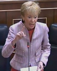 Tras esta intervención de la vicepresidenta, llegó el turno de Zaplana y como sucede todas la semanas el portavoz del PP deseó tener "más suerte" que Acebes para ver si De la Vega, por una vez, contestaba a las preguntas que le formula la oposición.