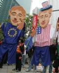 Además, y como consecuencia de esas protestas, los comisarios europeos de Comercio, Peter Mandelson , y Agricultura, Mariann Fischer Boel , tuvieron que acceder en barco al centro de convenciones para evitar la manifestación que durante cerca de una hora llevó a la policía a impedir la salida y entrada al edificio. Los negociadores comunitarios volvían a la conferencia tras reunirse con los ministros de Comercio y Agricultura de los Veinticinco para analizar el estado de las negociaciones en la OMC y tuvieron que buscar una entrada alternativa al encontrarse bloqueados los accesos principales del edificio. Fuentes de la Comisión indicaron que también viajaba la delegación danesa en el barco en el que se trasladó a los comisarios hasta el centro de convenciones, obra del arquitecto Norman Foster, y que se ubica al norte de la isla de Hong Kong y en la bahía del mar del Sur de China.