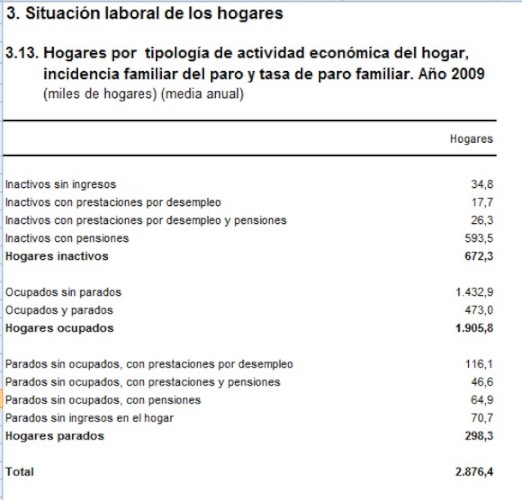 De los 2.876 hogares andaluces, 770.000 tienen un parado o más. En casi 300.000 hogares están todos sus miembros en el paro. Y el 30 por ciento de los hogares tiene o pensión o prestación por desempleo o ambas cosas. Lea el informe completo aquí.