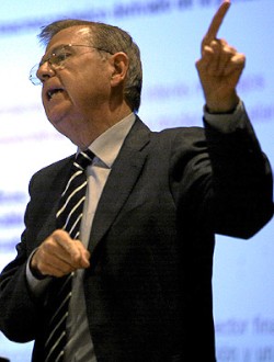 Otro de los retos, dijo, es evitar el peligro de que los desajustes de competitividad agudicen la contracción de la actividad y del empleo, de forma que el cambio en el sistema, dado que no se puede buscar un equilibrio monetario, se base en un aumento de la eficiencia y en la reducción de costes relativos.