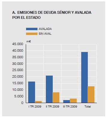 "Las dificultades de acceso al mercado todavía se reflejan en el importe de las emisiones con aval del Estado, que, desde febrero de 2009, cuando se produjo la primera, hasta mediados de septiembre, ha sido de 39.000 millones de euros, distribuido con diferente intensidad entre 39 entidades", concluye el informe.