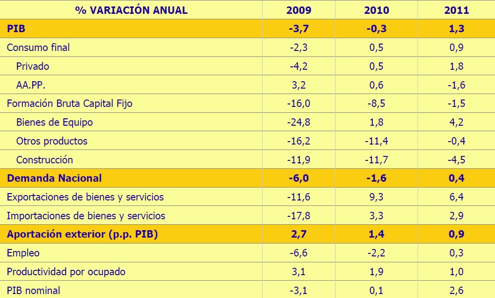 En materia de crecimiento, el Banco de España (BdE) estima que el PIB apenas crecerá un 0,8% en 2011, cinco décimas menos que lo estimado por Salgado. Mientras, la tasa media en 2012 sería del 1,5% frente al 2,5% oficial. Y ello, debido a la "lenta recuperación de la demanda nacional". En concreto, la demanda interna "seguirá estando afectada por la corrección de los desequilibrios acumulados en la larga fase de expansión que precedió a la crisis".
