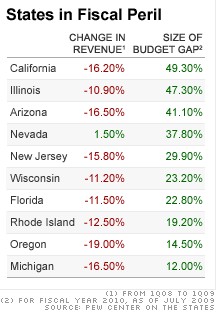 "Aunque California a menudo es la más observada, otros estados están enfrentando dificultades igualmente estremecedoras", indicó la directora del Centro Pew, Susan Urahn, un instituto de investigación con sede en Washington. "Las decisiones que adopten esos estados mientras intentan salir de la recesión tendrán un papel primordial en estimar la capacidad de recuperación de toda la nación", agregó.