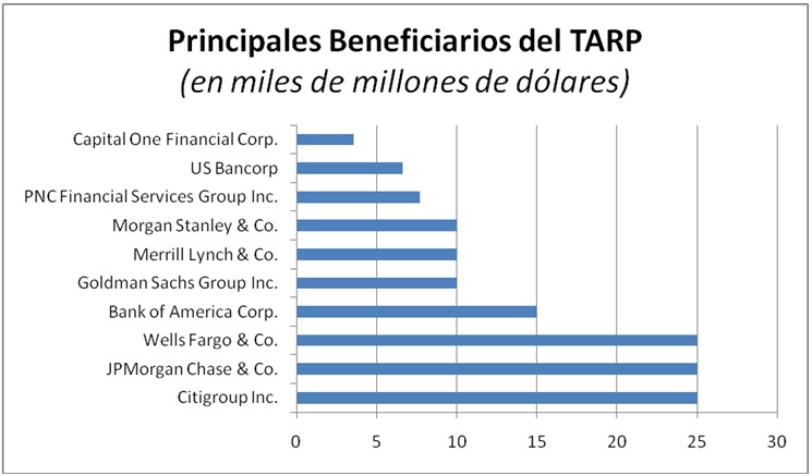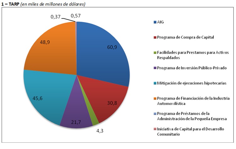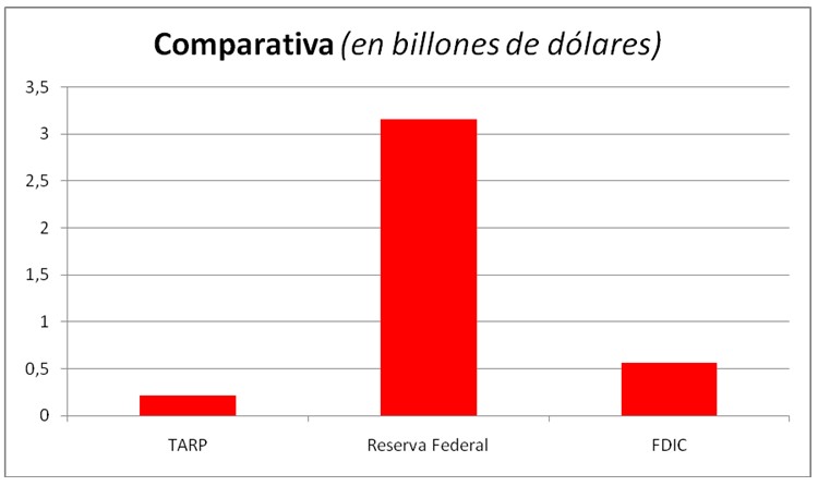 A pesar de todo esto, cabe tener en cuenta que el TARP no ha representado el grueso de las ayudas públicas concedidas al sector financiero norteamericano. Recuérdese que la burbuja inmobiliaria en Estados Unidos la gestaron, aparte de la Reserva Federal (FED), las dos grandes entidades patrocinadas por el Gobierno, las grandes agencias hipotecarias Fannie Mae y Freddie Mac.
