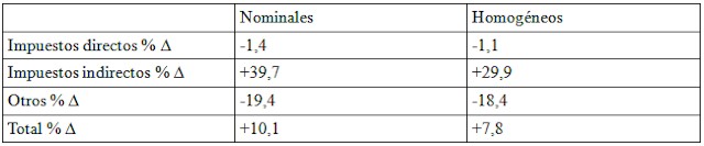 En la página 9 del informe, podemos ver los incrementos de ingresos nominales no financieros, y en la 11 los homogéneos para lo que llevamos del año 2010: