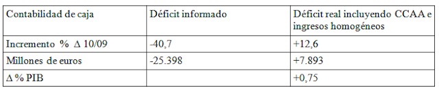 Ateniéndonos a lo estrictamente comprobable, podemos asegurar, sin temor a equivocarnos, que el déficit público, lejos de estar reduciéndose, está incrementándose, como podemos ver en la siguiente tabla.