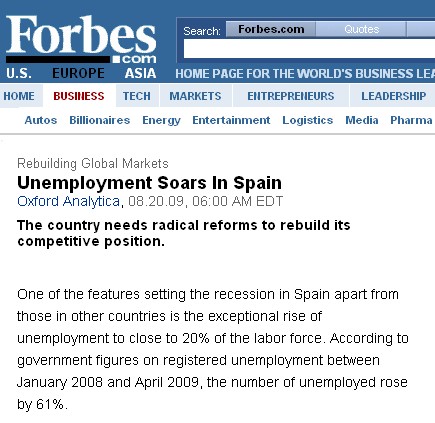 Para Oxford Analytica el principal problema que debe afrontar España es el del mercado laboral. La ausencia de reformas estructurales mantiene un creciente desempleo que amenaza con situarse cerca del 30% el próximo año (ya está cerca del 20% de la población activa).