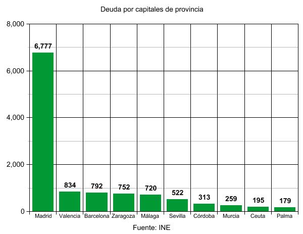 Con todo, las cifras son engañosas porque no es lo mismo el municipio de Madrid, que alberga a más de tres millones de almas, que el de Málaga con sólo 568.000. Los números reales de la deuda no hay que mirarlos en números absolutos sino repartiendo éstos entre el total de sus habitantes.