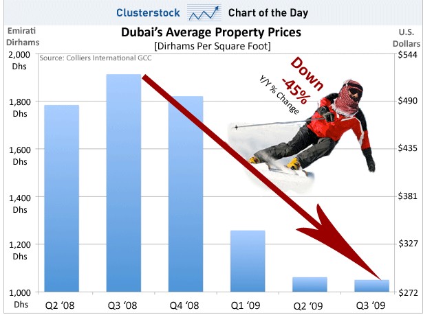 La expansión crediticia orquestada por el Banco Central de los Emiratos permitió la concesión de dinero fácil para financiar los megaproyectos inmobiliarios de Dubai, convertida hoy en ciudad fantasma. Tras el estallido de la crisis financiera internacional, el precio de la vivienda en Dubai se ha desplomado un 45% en el último año, según un informe de Colliers International.