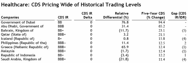 El siguiente cuadro muestra los 10 países que sufrieron un mayor deterioro en la calidad de sus bonos durante la pasada semana. La mitad es deuda perteneciente a países de Oriente Medio. El país europeo más afectado fue Grecia. De hecho, la agencia de calificación de riesgos Fitch avanza ya una nueva degradación de deuda para, al menos, tres países: Arabia Saudí, Bahrein e Islandia.