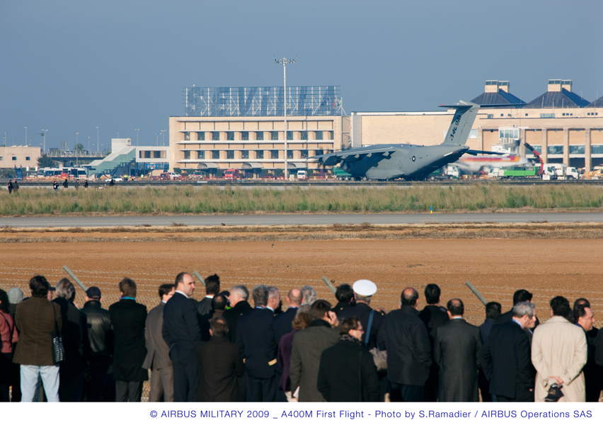 En marzo se hizo la primera prueba estructural y se anunció el vuelo inaugural para julio, pero también se canceló. Para entonces las presiones financieras y políticas empezaban a ser considerables. El 26 de junio de 2008 el avión fue presentado a la prensa en Sevilla, salió del hangar y volvió a entrar. Le faltaba aún año y medio para volar. Finalmente el vuelo inaugural se produjo, también en Sevilla, hace poco más de un mes, el 11 de diciembre de 2009, con casi dos años de retraso.