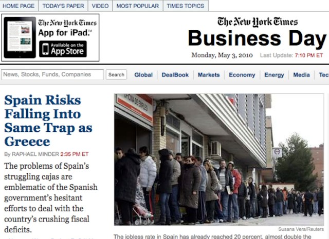 Según los analistas de la prestigiosa revista Fortune, si bien “puede ser verdad” que a “corto plazo” el Gobierno español no tenga necesidad de pedir un rescate, “a largo plazo tendrá que demostrar que puede valerse por sí mismo. España no es Grecia, pero si los españoles no cambian su actual trayectoria, tienen un potencial mucho mayor que el de Grecia”, en referencia al daño económico que podría ocasionar un posible default español (suspensión de pagos), ya que el peso de su economía es cuatro veces superior a la griega.