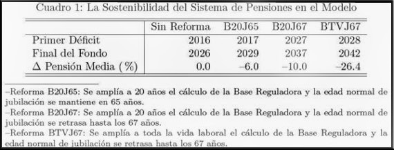 En un didactico artículo publicado en el blog de Fedea, Nada es Gratis, estos tres economistas analizan varios escenarios de reformas del sistema de pensiones y qué consecuencias tendrían respecto a la sostenibilidad del sistema. En este análisis calculan dos límites para cada una de las posibles reformas: cuándo el sistema registrará su primer déficit -es decir, cuándo los pagos de las cotizaciones de los trabajadores serán menores que los ingresos de los pensionistas- y cuándo se agotará el Fondo de Reserva.