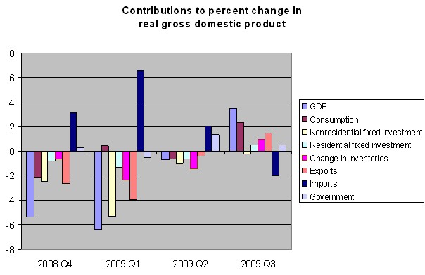 De este modo, casi dos tercios del crecimiento económico de EEUU en el tercer trimestre se debe a los planes de estímulo del Gobierno: las subvenciones a la compra de vehículos y vivienda y el aumento del gasto federal.
