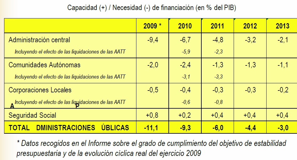 La cuestión es que, por el momento, los datos de ejecución presupuestaria no arrojan el ajuste previsto en las cuentas públicas. De mantenerse esta tendencia, el déficit seguirá superando el 10% del PIB en 2010, casi un punto porcentual más de lo estimado (unos 10.000 millones de euros adicionales).