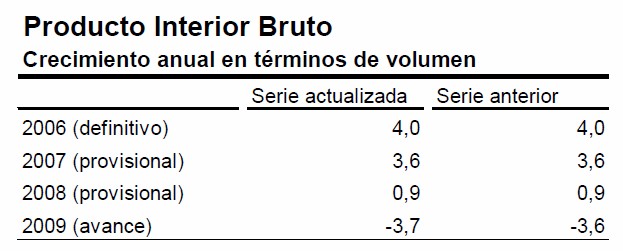 Aún así, el Gobierno falló pese a las reiteradas rectificaciones. El Instituto Nacional de Estadística (INE) sentenció un crecimiento del PIB de apenas el 0,9% interanual en 2008. Es decir, las previsiones económicas de Solbes se desviaron un total 2,4 puntos porcentuales del PIB, equivalentes a cerca de 25.000 millones de euros.