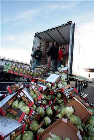 En este sector se ha reiniciado el traslado de la fruta recogida en Murcia, Comunidad Valenciana, Andalucía y Extremadura gracias a las fuerzas de seguridad, que escoltaron los convoyes para "sortear" a los piquetes de transportistas. La entrada de productos en el Mercado Central de Abastecimiento de Madrid (Mercamadrid) ha sido hoy el 87 por ciento menos que el jueves pasado, con 1.202.810 millones de kilos frente a los 9.251.787 kilos registrados hace una semana, según datos facilitados hoy por la entidad.