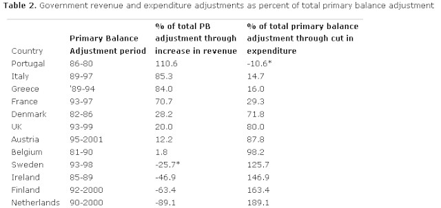 En las últimas crisis fiscales, los países mediterráneos (Grecia, Portugal e Italia) han apostado por aumentar los ingresos tributarios y reducir escasamente el gasto público. Dicha opción contrasta con la seguida por los países nórdicos, cuyos ajustes se han basado generalmente en drásticos recortes del gasto e, incluso, reducción de impuestos.