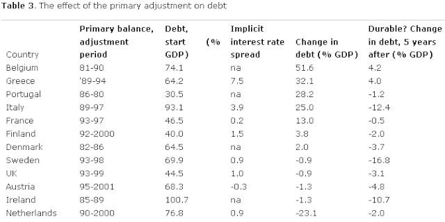 Por el contrario, a la vista de las últimas crisis fiscales, los gobiernos que realizan el ajuste exclusivamente por el lado del gasto, rebajando incluso impuestos, logran reducir su nivel de deuda pública, evitando así por completo su caía en una espiral de deuda, con el consiguiente abaratamiento de la financiación pública (tipos de interés más bajos para colocar bonos en el mercado).