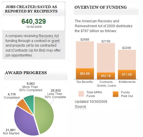 Por otro lado, el Gobierno de EEUU ha calculado esa cifra de empleos directos a partir de los números proporcionados por los estados, contratistas del Gobierno, empresas y universidades. Las cifras, disponibles en la página de Internet recovery.gov., representan el panorama más completo de cómo se han empleado hasta el momento los fondos del plan de estímulo.