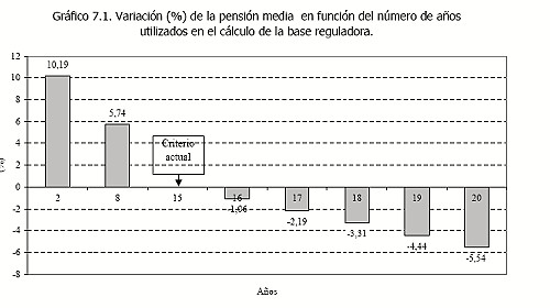 En teoría, la ampliación supondría un beneficio para algunos cotizantes y un perjuicio para la mayoría de ellos. Saldrían beneficiados aquellos que son expulsados del mercado laboral a partir de los 50 años y, por lo tanto, sus últimos 15 años de cotización quedan deteriorados y son peores que los anteriores. Pero en una carrera laboral tradicional, los últimos años cotizados son lo mejores y, por ello, un aumento del plazo de cálculo provocaría una rebaja de la cuantía de la pensión.