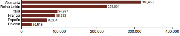 Salvo en el caso polaco, son cifras similares. La diferencia está en el momento en el que se empieza a pagar ese tipo máximo. Es decir, cuándo Hacienda considera que sus ciudadanos son ricos como para entrar a cotizar dentro del tramo superior del impuesto. Así, en Alemania se sube a ese escalón a partir de unos 230.000 euros (316.456 dólares según el estudio), en Reino Unido a partir de unos 146.500 euros, en Italia a partir de unos 68.800 euros, en Francia de 64.000, en Polonia de 19.216 euros... y en España en los 52.360 euros