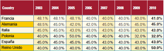 Evolución del tramo superior del Impuesto sobre la Renta (Fuente: KPMG)