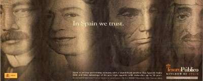 El Tesoro acaba de dar una nueva vuelta de tuerca a nivel de marketing con el fin de colocar sus bonos a los inversores internacionales. Hace algunos meses, Economía (órgano del que depende el Tesoro) lanzó una campaña publicitaria en los medios escritos anglosajones con el fin de vender deuda pública. Entonces, el lema escogido fue “In Spain we trust”, imitando así la emblemática cita que incluyen los billetes de dólar estadounidenses (In God we trust / En Dios confiamos).