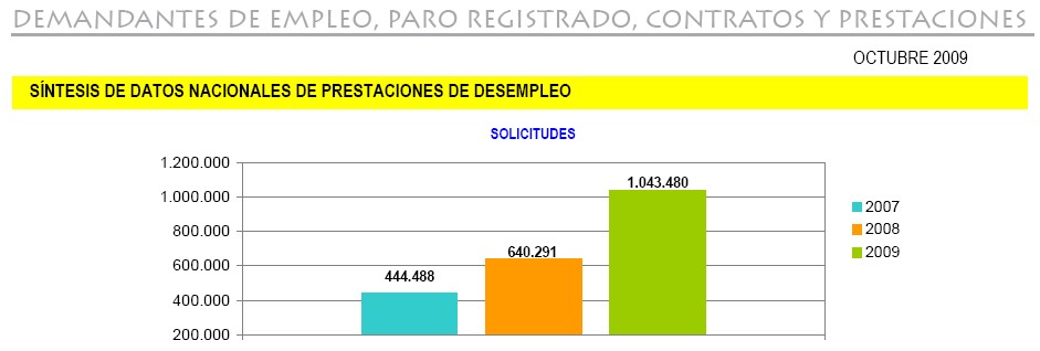 Pese a que los meses de otoño del año pasado representaron el periodo más crudo del ajuste de empleo desde que se inició la crisis, el número de solicitudes de prestaciones por desempleo han crecido en octubre de 2009 en 1.043.480, un 63% más que en el mismo mes de 2008.